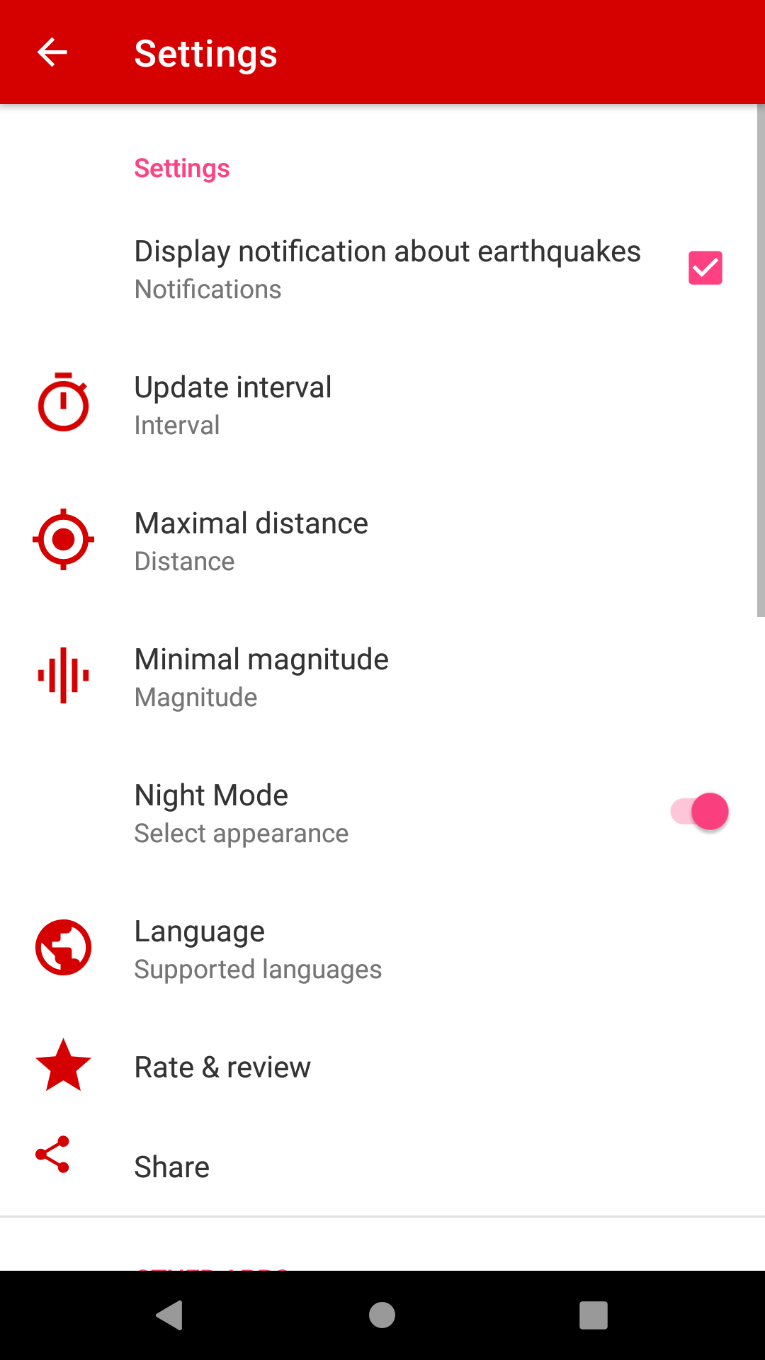 می توانید با انتخاب بزرگی و فاصله از موقعیت مکانی خود، هشدار زلزله را در تلفن همراه خود تنظیم کنید.