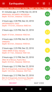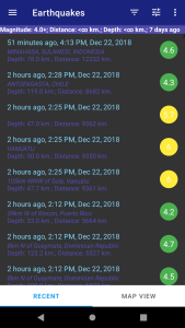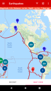 این برنامه آخرین زمین لرزه های سراسر جهان را در فهرست و روی نقشه نشان می دهد.
