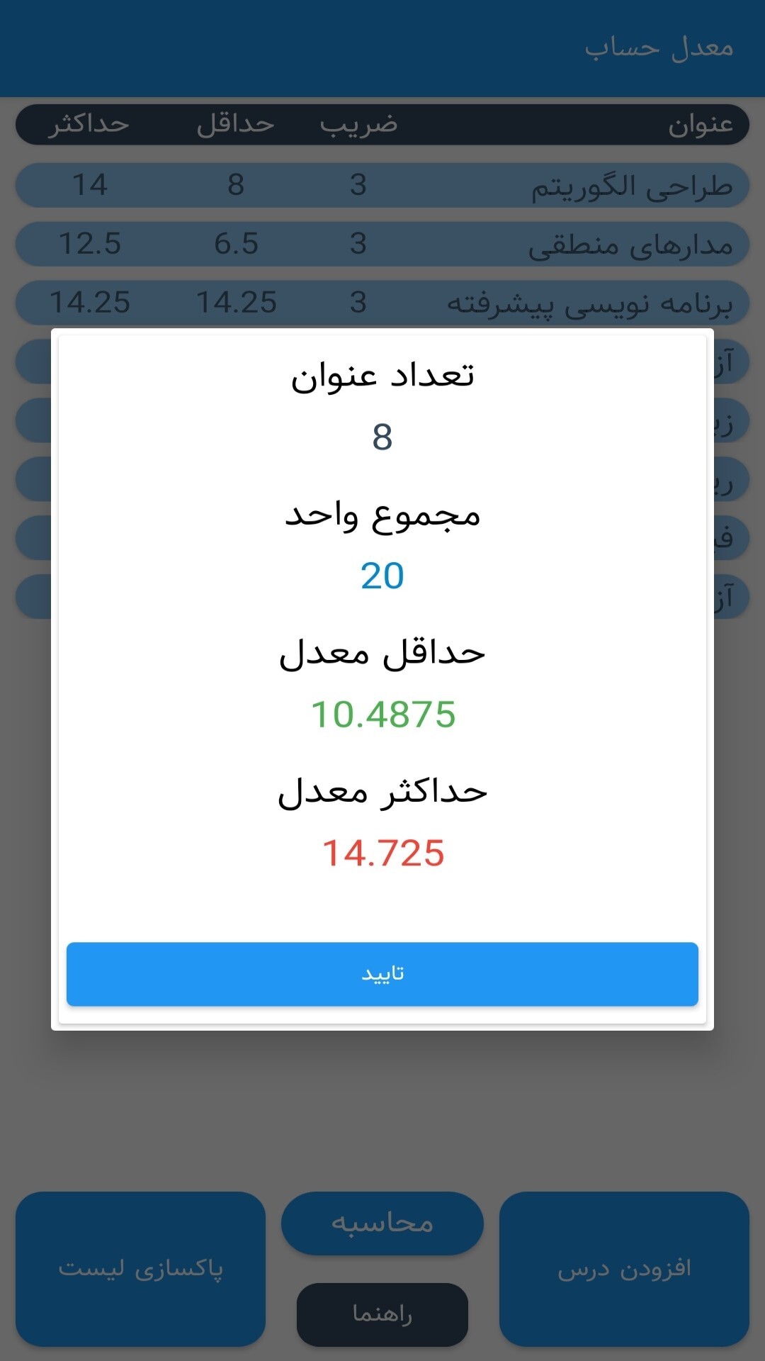 تغییرات برنامه معدل حساب در نسخه جدید+ امکان حذف تکی دروس اضافه شده است.
