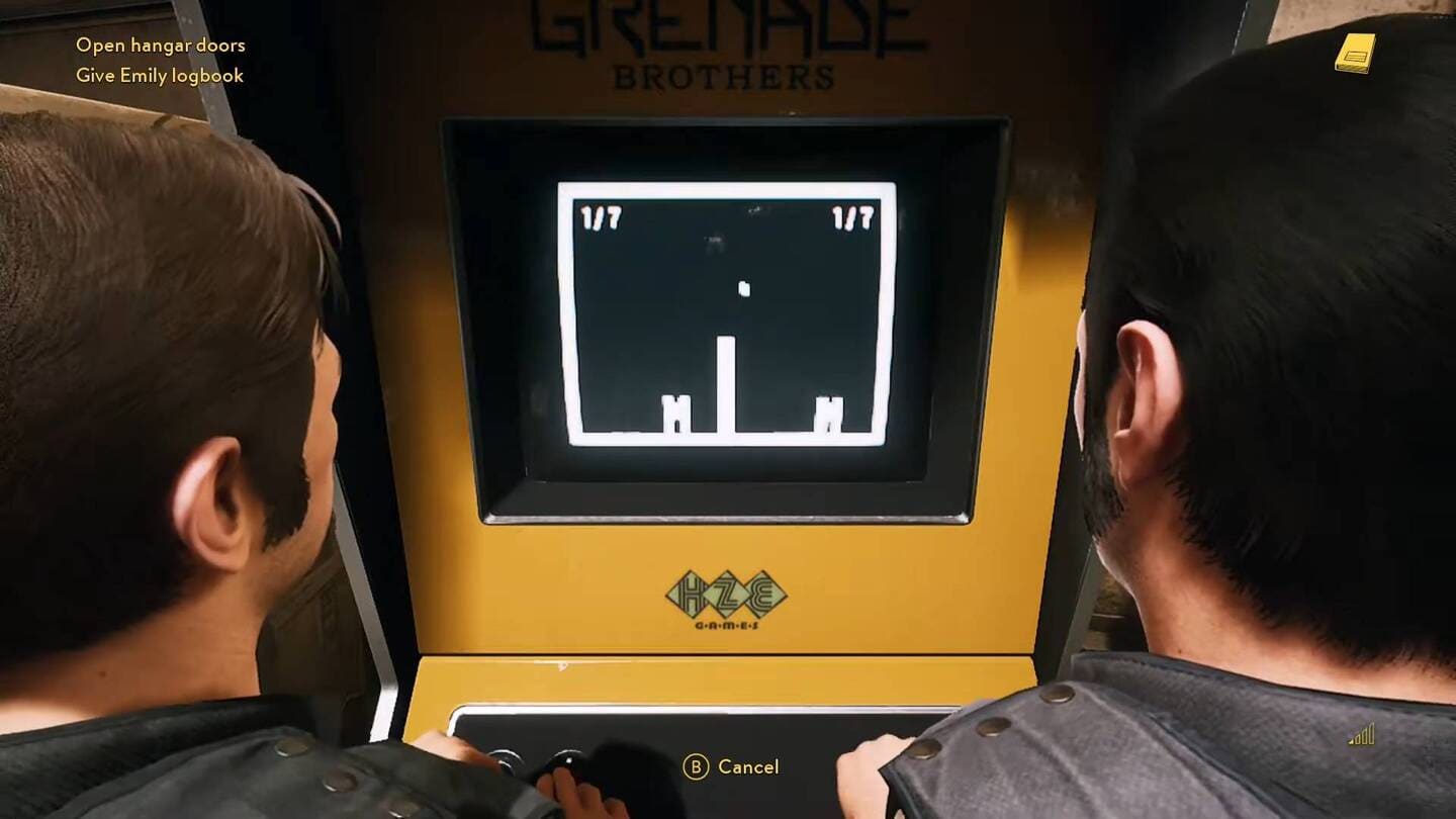 A Way Out یک بازی Co-op است که در آن شما و دوستتان در نقش دو زندانی فراری به نامهای لئو و وینسنت بازی میکنید. برای دو محکوم فراری احتمالا وقت زیادی برای تفریح و بازی وجود ندارد، اما این دو در طول بازی بارها مشغول فعالیتهای سرگرمکنندهای همچون بیسبال، چرخیدن روی صندلی چرخدار و حتی تشکیل باند موسیقی میشوند. در پایان بازی نیز این دو در کابین هواپیما میتوانند یک بازی ویدئویی را با هم تجربه کنند که شباهت زیادی به بازی Pong دارد. عنوانی که عمر آن به قدمت تاریخ بازیهای ویدئویی است.